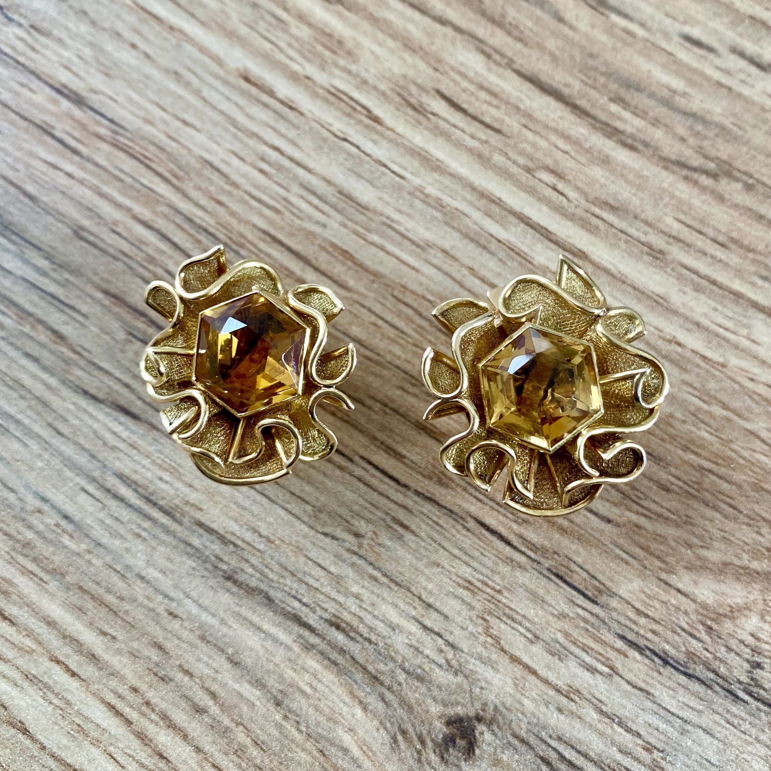 Pair of citrine and gold ‘Tulle’ ear clips, by Van Cleef & Arpels, circa 1949