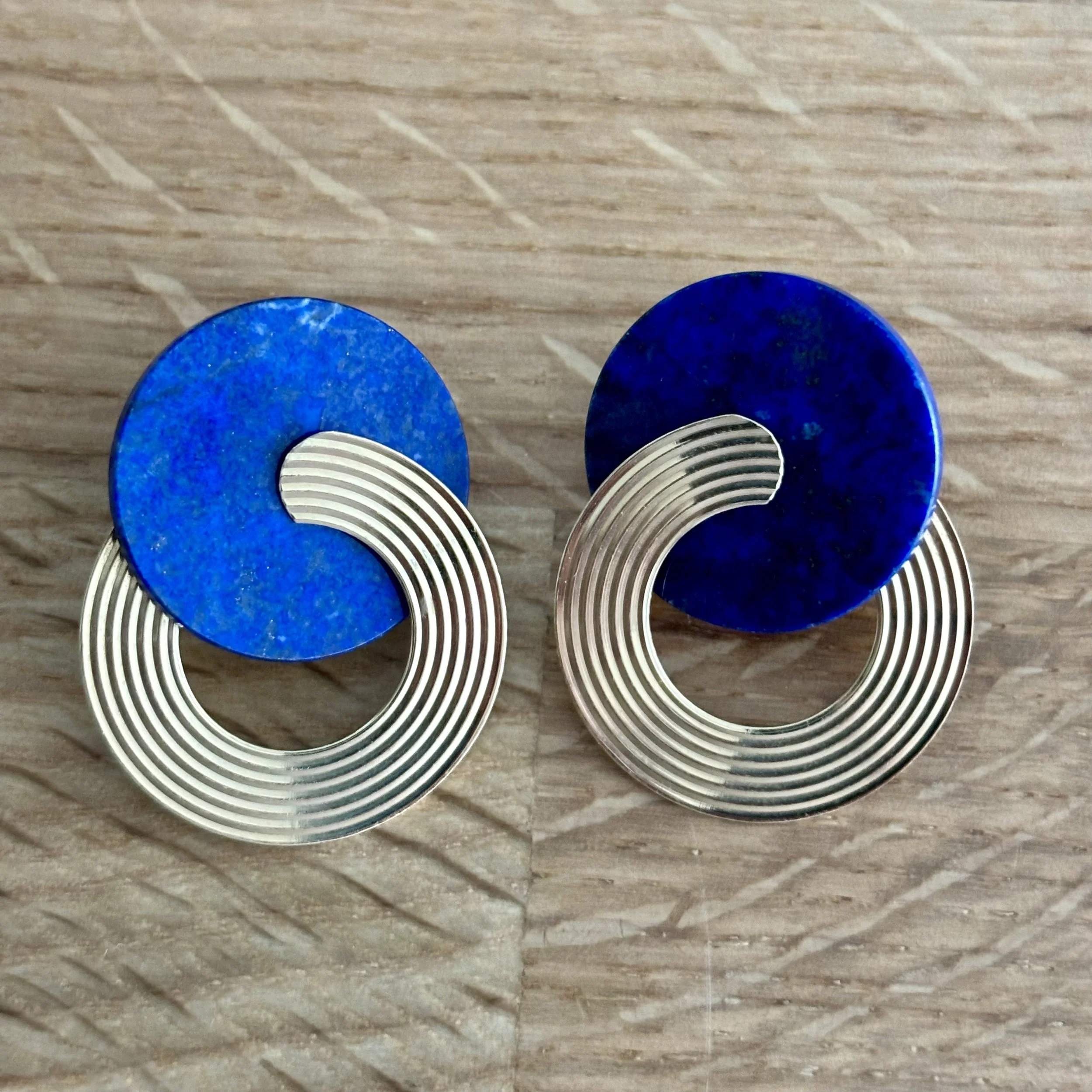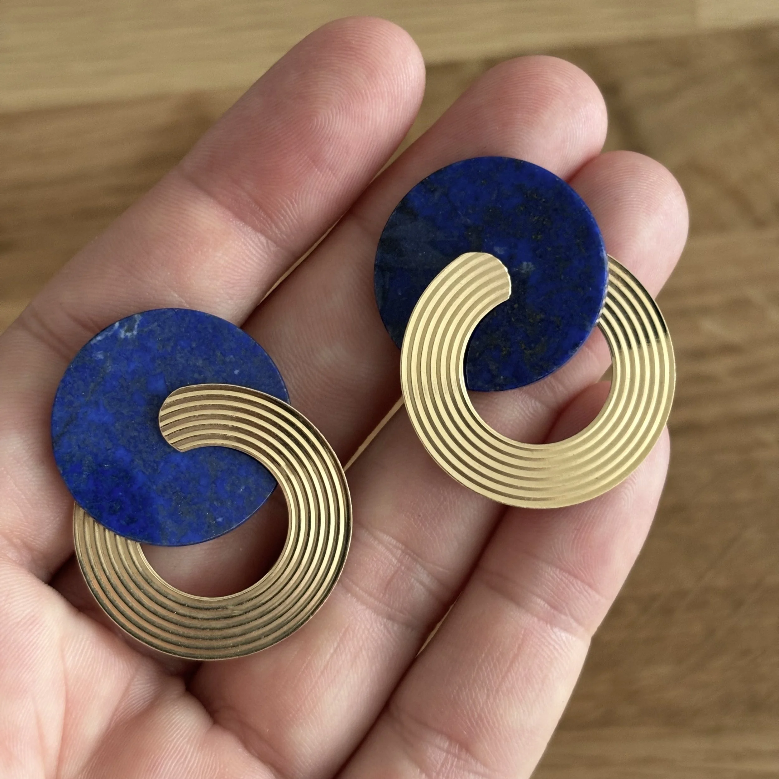 •Diameter gold circle 2.8 cm, diameter lapis lazuli circle 2.3 cm.