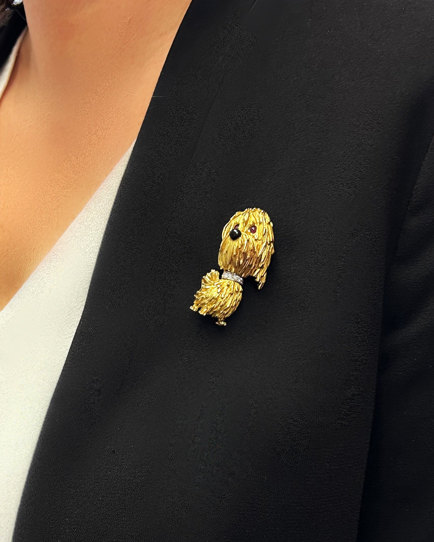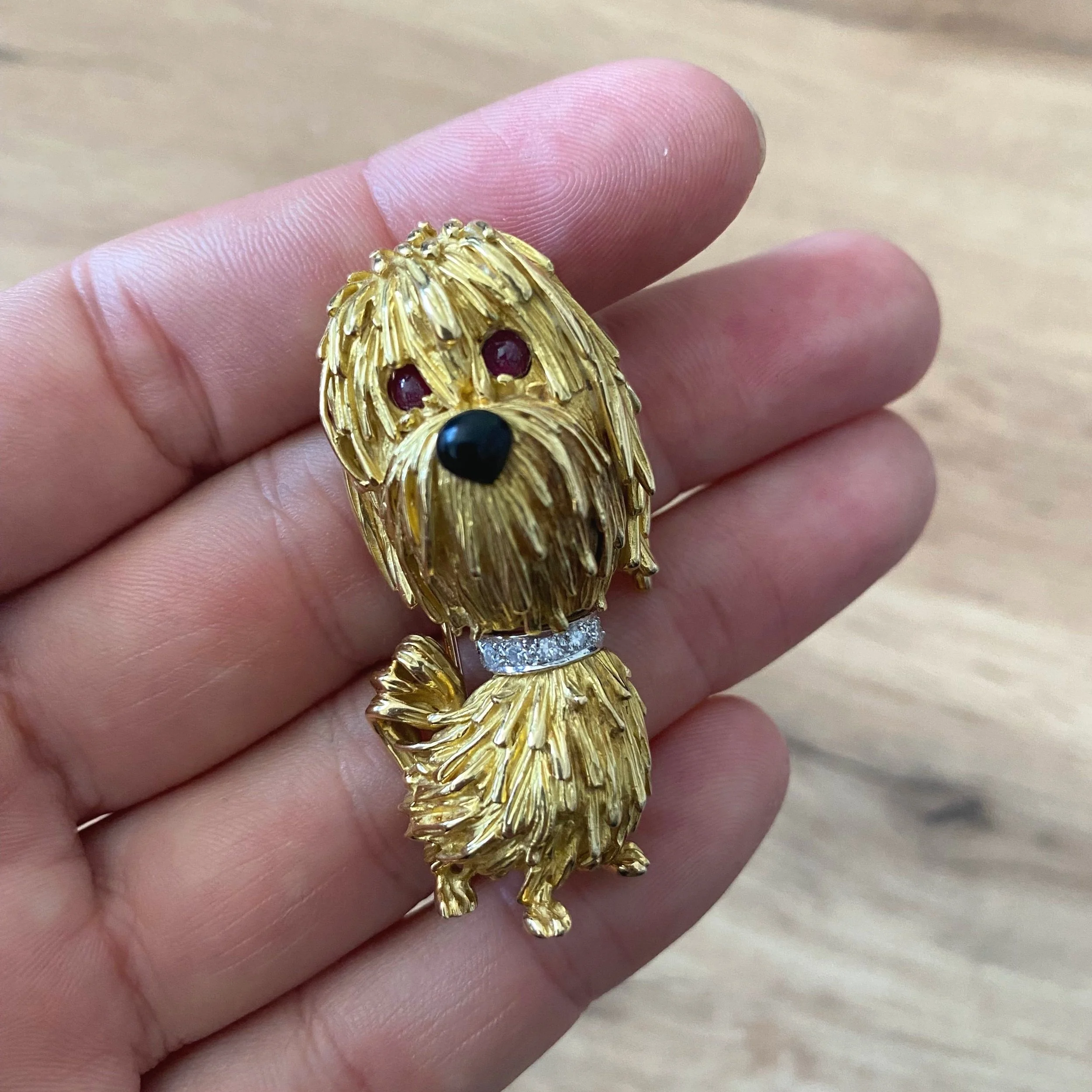 Gold, diamond, ruby and enamel dog brooch