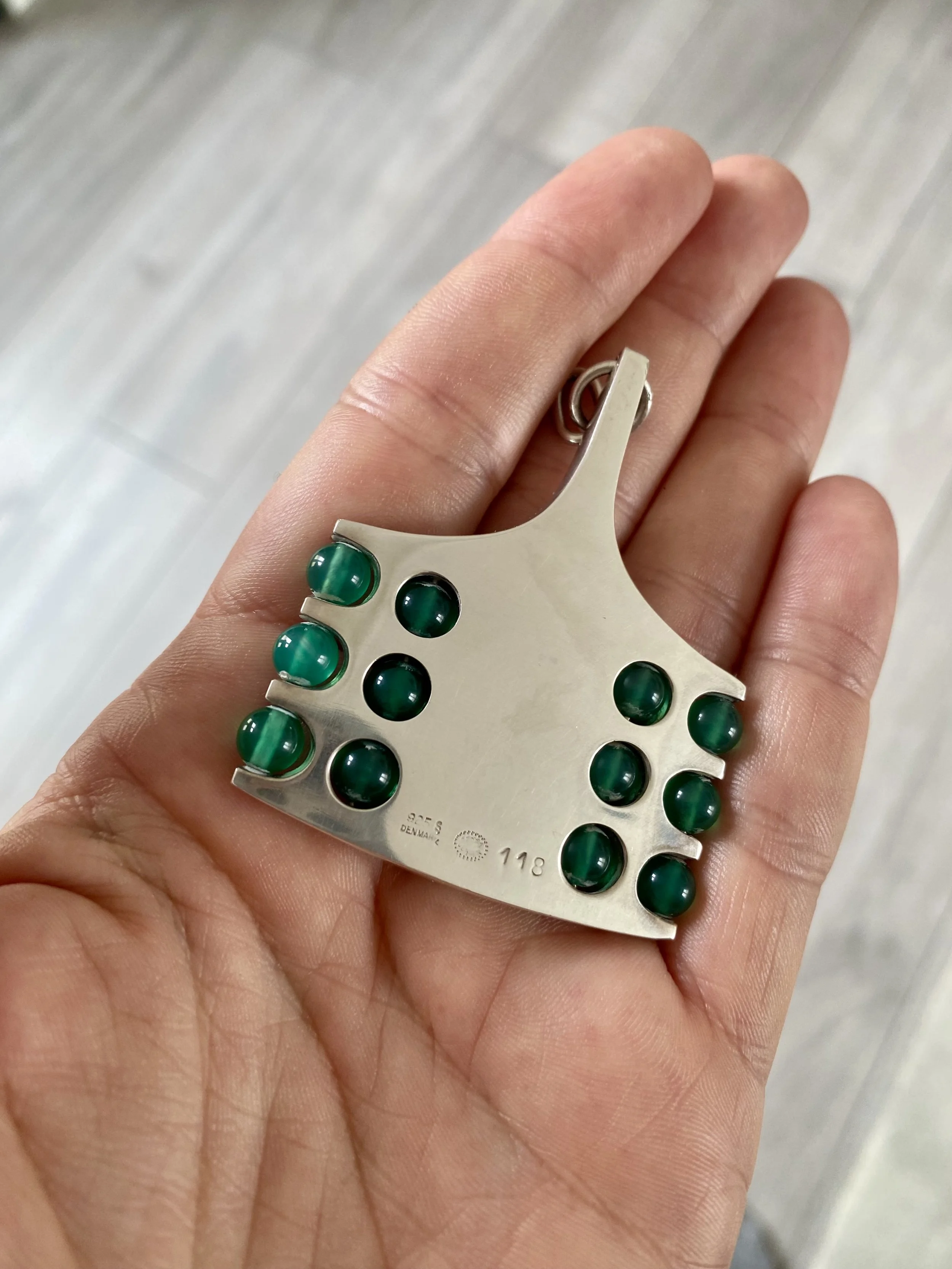 Green agate and silver pendant, by Georg Jensen, 1970s