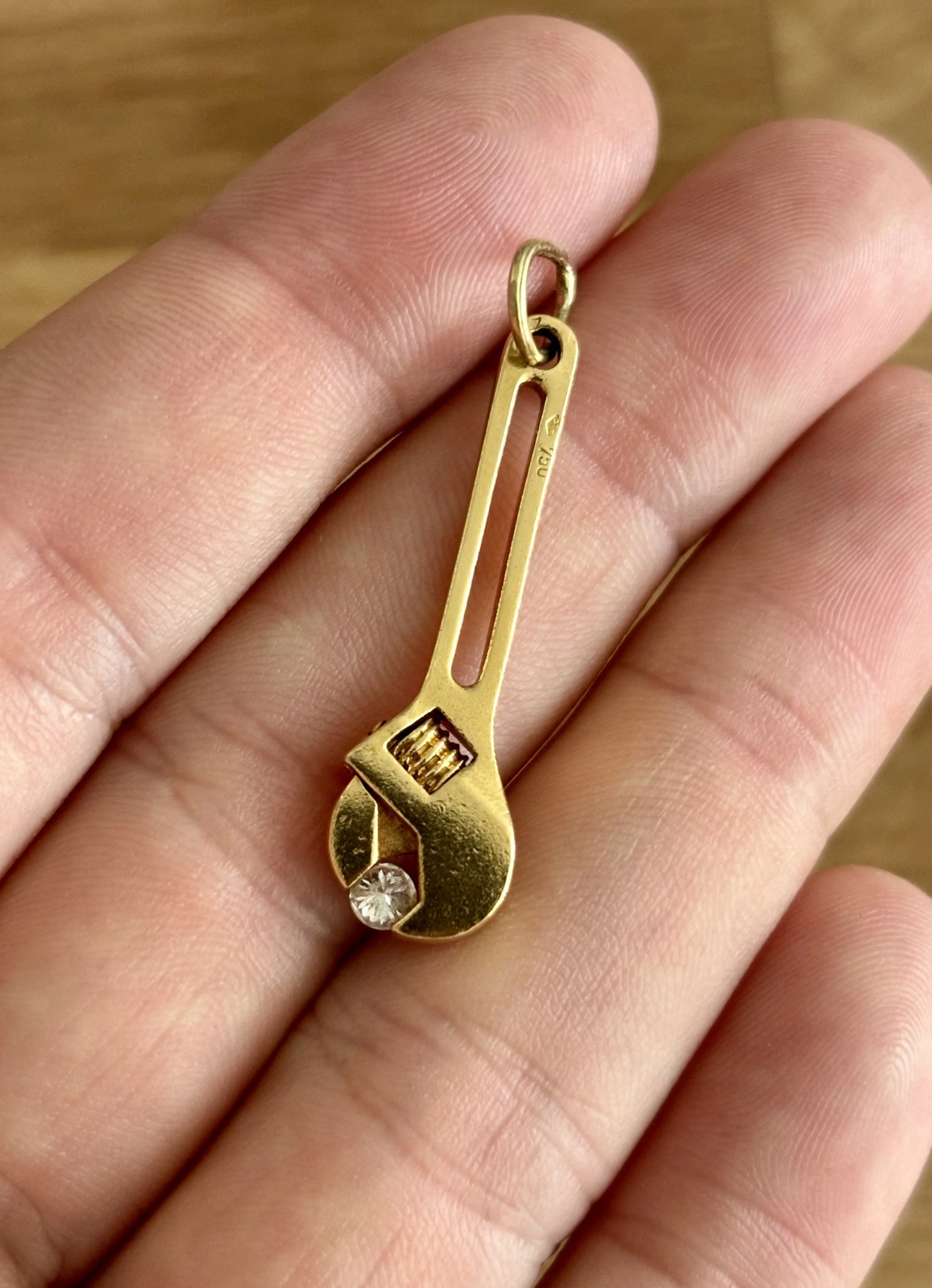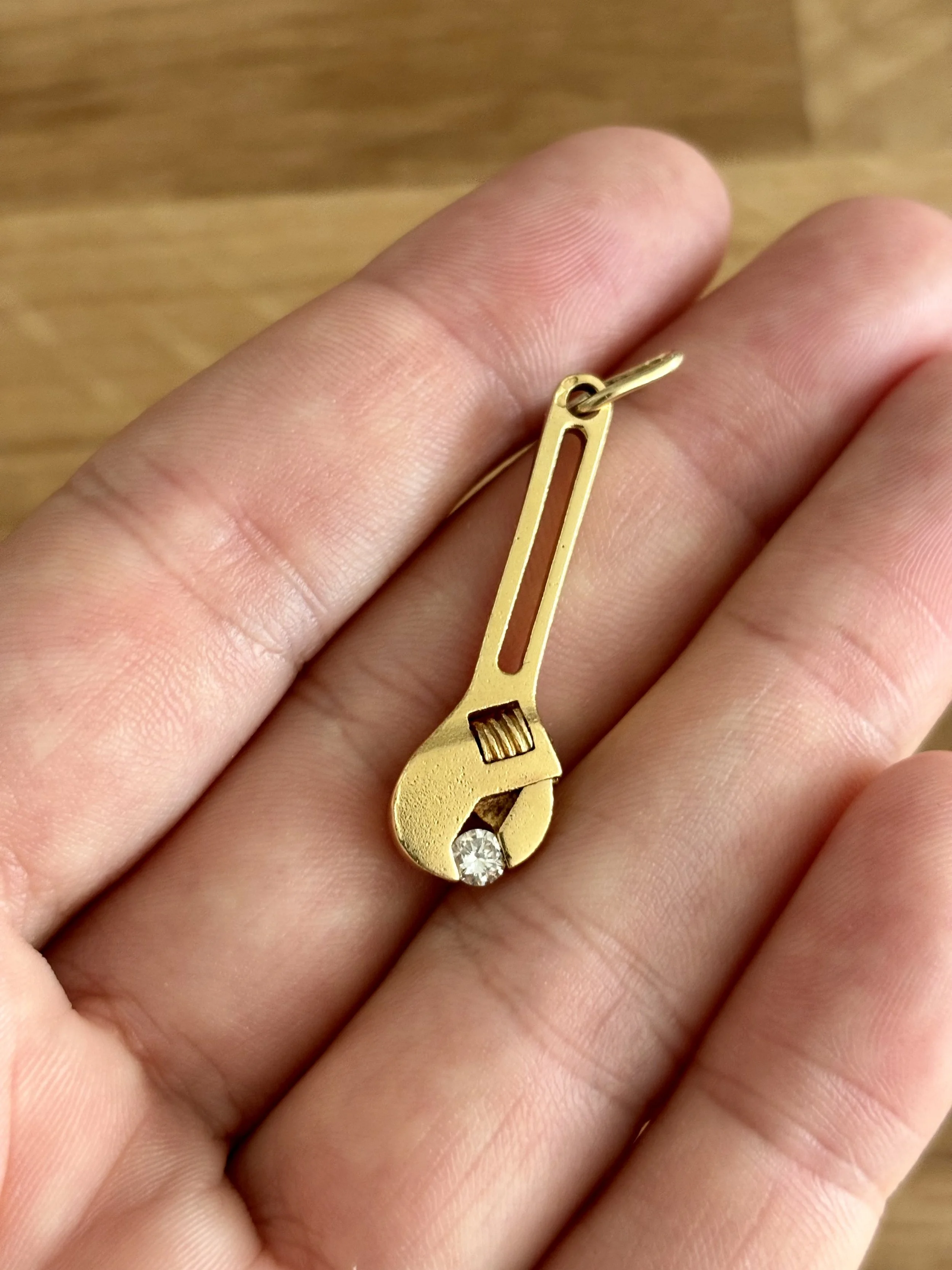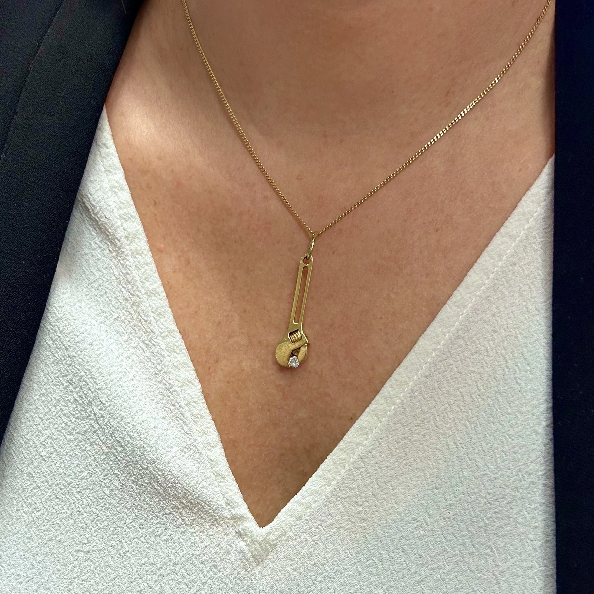 Gold and diamond wrench pendant, by Gilles Jonemann