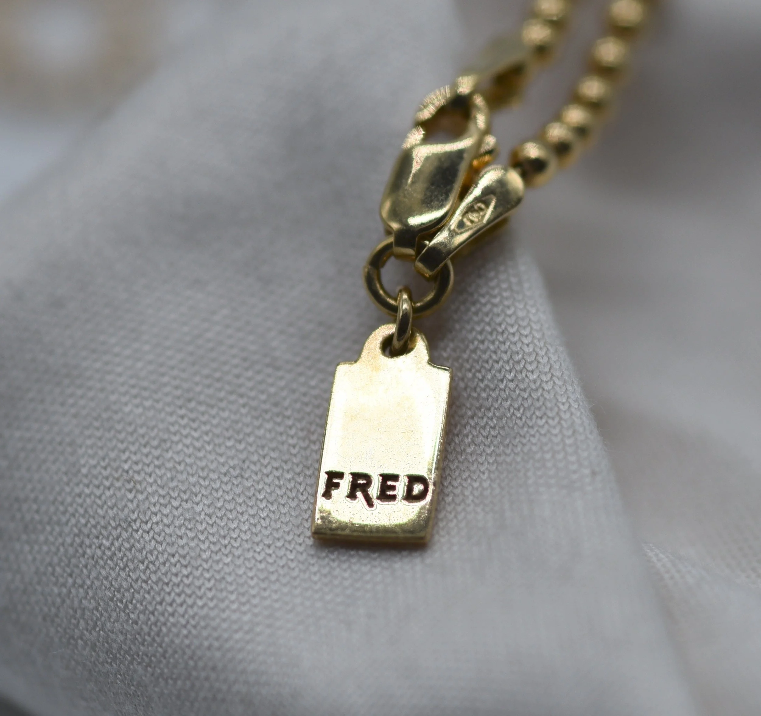 • Chain: inscribed 750, marked FP for FRED Paris, numbered BGF76338.