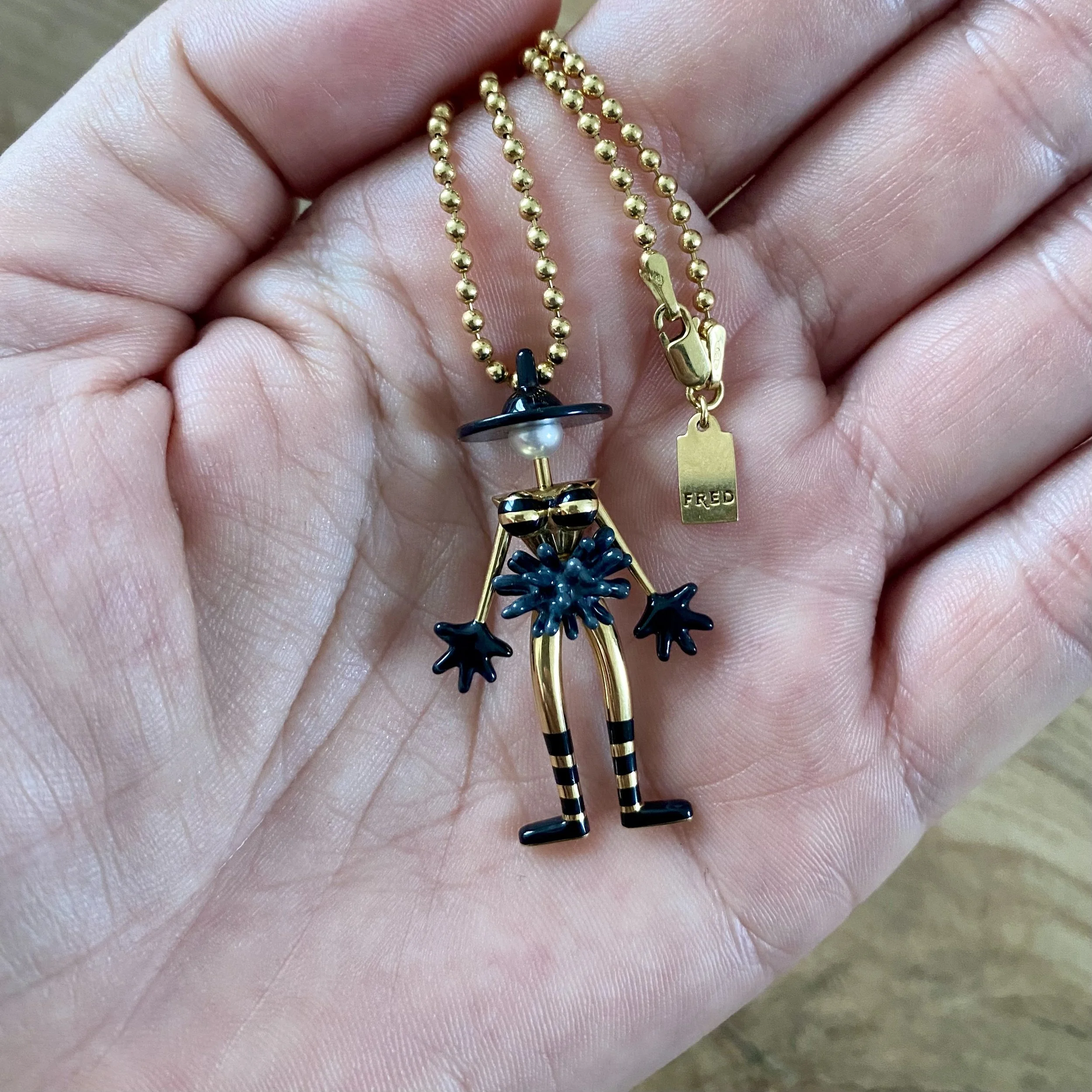 Black lacquer, gold and cultured pearl ‘Karen’ pendant on chain, by Jean-Paul Goude for FRED, 2009